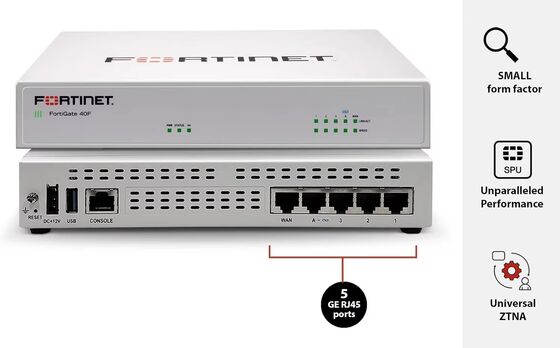 FG-40F Security Firewall 5 X GE RJ45 Ports 4 X Internal Ports 1 X WAN Ports Fortinet FortiGate 40F Next GEN Firewall